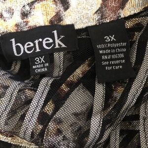 Berek Cocktail Blouse Zippered Sheer Mesh Black Gold Silver 3X