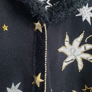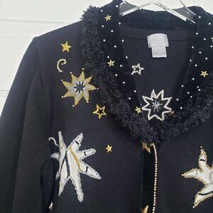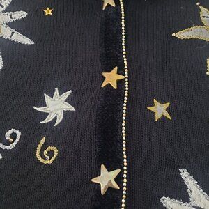 Berek Embellished Star Cardigan Beaded Black Sweater Womens Size Large