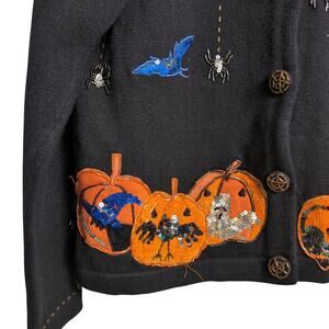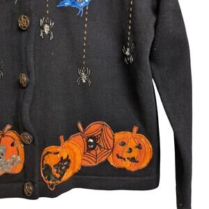 Berek Halloween Cardigan Pumpkins Bats Spiders Spiderweb Buttons Sequins Beads M