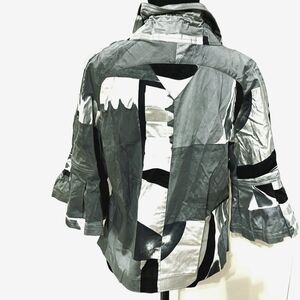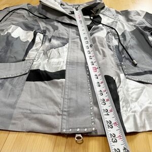 Abstract coloring zip jacket decorated with rhinestones, two open on the sides, good condition, size M, measurements: