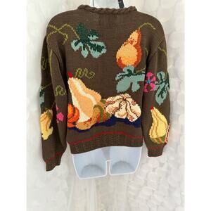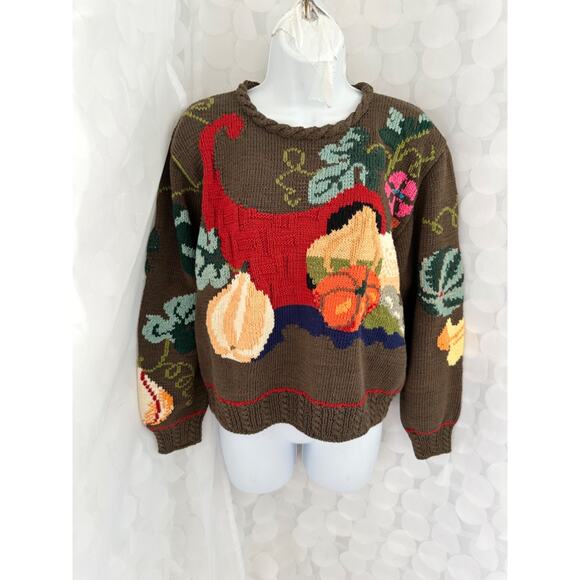 Berek Marta D Sweater Small HAND KNIT Cornucopia Pumpkins Leaves Gourds 1989 NEW
