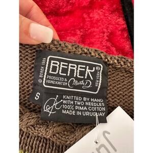 The Berek Marta D Sweater is a small, hand-knit sweater with a cornucopia pattern of pumpkins, leaves, and gourds, perfect for the fall season. Made from a combination of cotton and 100% wool, this vintage sweater from 1989 features long sleeves, a crew neck, and a pullover style. The multicolor design adds a festive touch to the casual occasions it is suitable for. This unique piece is sure to showcase your style with its regular fit and cardigan style, adding a touch of warmth in the winter and fall seasons.