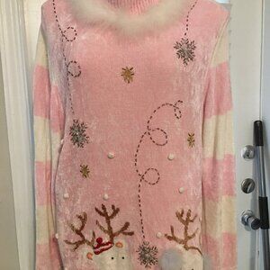 Berek Pullover Pink & Boa Christmas Sweater Fits 40 Bust Vintage Sw1
