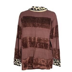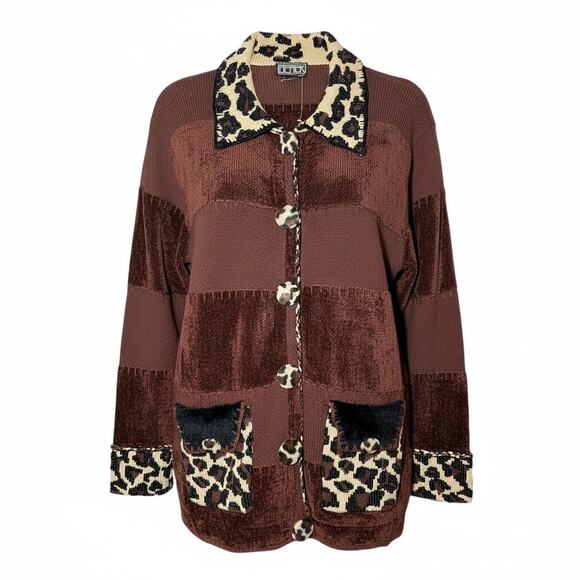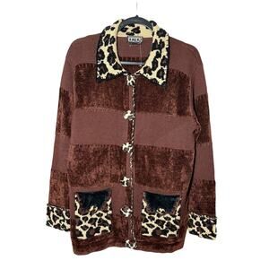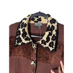 Berek Brown Animal Print Leopard Beaded Cardigan Button Vintage Sweater