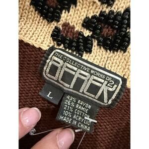 Berek Sweater Womens L Brown Animal Print Leopard Beaded Cardigan Button Vintage