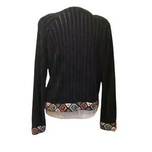 Berek by Takako Sakon Beaded Chenille Cardigan Sweater M VTG Boho Southwestern Tassel