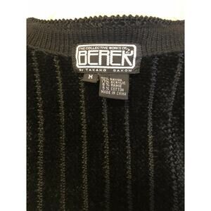 This rare vintage Berek by Takako Sakon chenille cardigan sweater (size Medium) is a true statement piece. Made with a soft and stretchy rayon blend fabric, it features exquisite multicolor hand-beaded embellishments on the trim, buttons, and sleeves—giving it a bold southwestern, bohemian vibe. The unique buttons and fringe bead tassels at the hem make it a collectible gem.