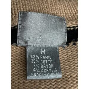 Berek Tiger Striped Embroidered Cardigan Knit Sweater size M Tan/Black Vintage