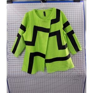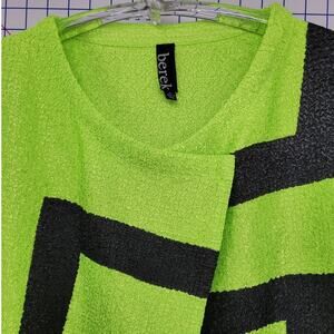 Berek Vintage 80s Green Black Crinkle Snap Front Asymmetric Geometric Tunic Top