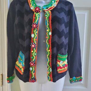 Berek Vintage 90s Chevron Abstract Embellished Cardigan Sweater Small