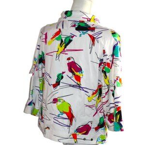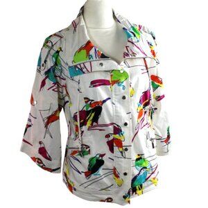Berek White Multi Abstract Tropical Bird Cotton Jacket Size Large