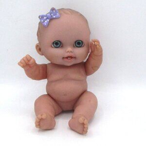 Berenguer 9" Baby Doll With Green Eyes Purple Bow Realistic Features Soft Vinyl