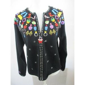 Berer2 M Fun Sweater Beads Sequins Embroider Takako Sakon Zip Long Sleeve Women