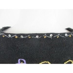 *Embroidery is a little messed up on the back side of the sleeve. (Last 2 pics) It Does not take away from the pretty work that is done on it! Star on the front is missing 1 leg. I do not see any other damage! Sweater is in great shape! Zipper works great!