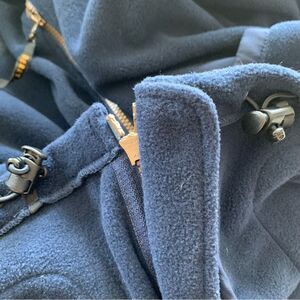 Excellent condition. Drawstring bottom and zips up both ways. long sleeves. 30" inches long and 26" inches pit to pit. 2 oversized slip pockets. Logo and quilted detail. Ribbed collar and arm cuffs. Lined.