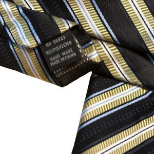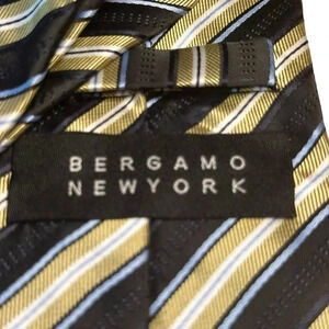 Bergamo New York Men's Striped Black Silver Hand Made Classic Tie