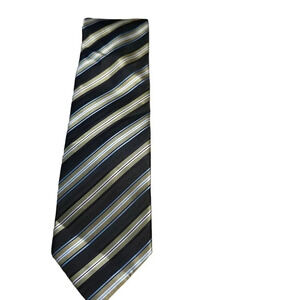 Bergamo New York Men's Striped Black Silver Hand Made Classic Tie