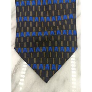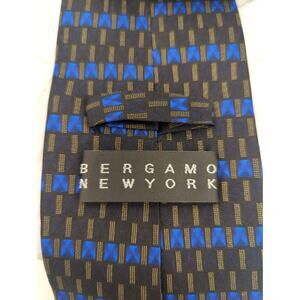 Bergamo New York Neck Tie 100% Silk Black Blue Brown Design Hand Made Modern