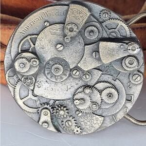 Bergamot Brass Works Vintage 70s Steampunk Buckle Braided Leather Belt