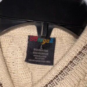 Bergati Cable Knit Sweate Neck Pullover Mens Textured Beige Large