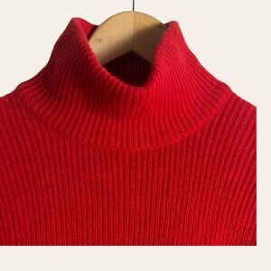 Bergdorf Goodman Vintage Red Ribbed Knit Turtleneck Wool Sweater Size Small
