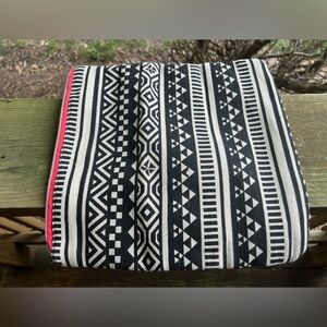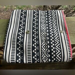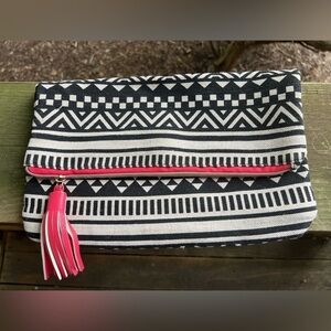 Bergdorf Goodman aztec black cream southwestern boho clutch orange trim Y2K