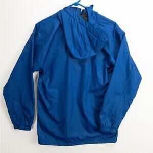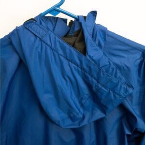 Berghaus Men’s XS / Youth L Aquafoil jacket in bold blue with black mesh lining. Lightweight, waterproof, and built for movement Features full-zip front, zippered hand pockets, and fixed hood.
