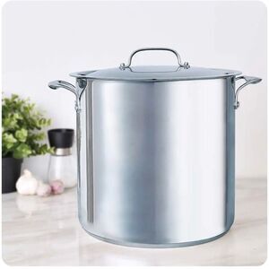 Bergner 16Qt Stainless Steel Stock Pot with Cover Specifications: -16 Quart -11 x 10.6 Inch Product Details: -Volume markings etched inside the pot provide an easy way to measure contents -Heat resistant stainless steel handles -304 Stainless steel construction and dual riveted handles deliver strength and durability -One layer thick aluminum provides faster even heat distribution -Magnetized stainless steel cap ensures compatibility with all stovetops, including induction