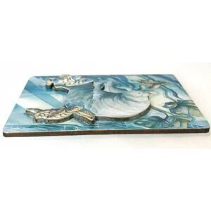 This vintage 3D refrigerator magnet features adorable manatees; a cow and her calf, and sea turtles. Perfect for collectors of marine life memorabilia, this magnet is sure to add a touch of charm to any collection. It measures 4” x 3”. Crafted with attention to detail, it’s not only cute but also decorative. It would be great for adding a unique touch to any room or for use as a thoughtful gift.