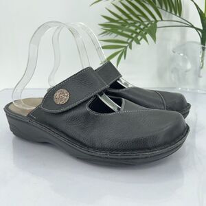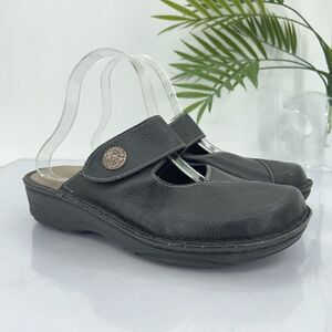 Berkemann Heliane Clog Slide Mules US 7 Black Leather Shoes Adjustable Strap