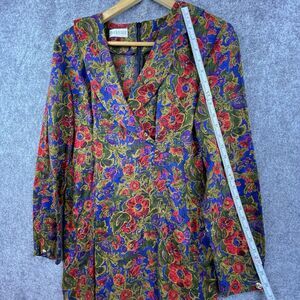 Berkertex Dress Womens 14 Jewel Tones Flowers Luxe Designer Vintage Pleated Wool