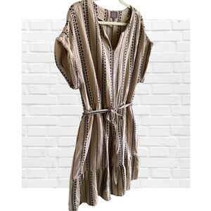 Berkley Jensen Aztec Embroidered Gauze Belted Dress Elastic Waist XL Black Tan