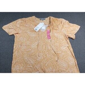 Berkley Jensen Naples GOLD printed flutter blouse Size XXL womens NWT