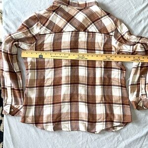 Casual plaid button-up shirt in brown and cream. XL