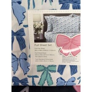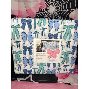#berkshire #berkshire sheets #blue bow sheets #bow sheets #berkshire bow sheets #blue bow #coquette #full sheet set #berkshire artist series #krissy mast