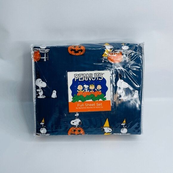 Berkshire Peanuts Halloween Snoopy Woodstock Magic Pumpkin Blue Full Sheet Set