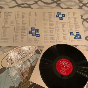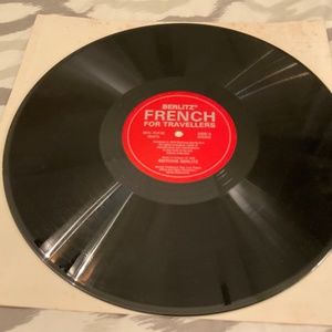 In amazing condition, this Berlitz vinyl record “French for travelers” includes the original script.