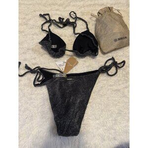 Berlook Black Shimmer Two Piece Swimsuit String Bikini Size XL NEW W Bag