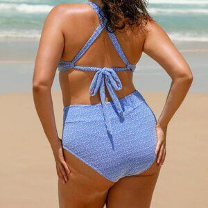 Berlook Blue Plus Size Bikini Set 22 | NWT | High Waist V Cut Jacquard Swimwear