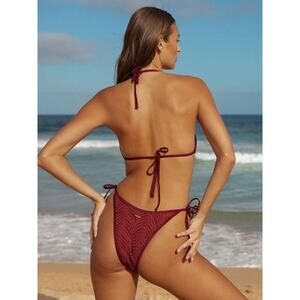Berlook Burgundy Crochet Halter Triangle Top and Tie Bottom NWT size XL