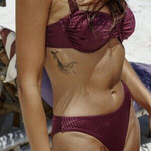 Berlook Burgundy Solid Textured Bikini Bottom ONLY 60