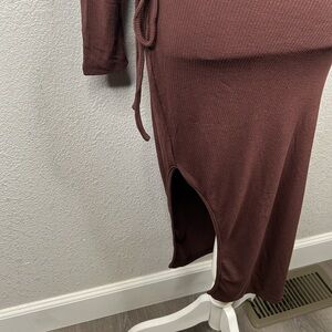 Berlook Chocolate Brown Ribbed Cut Out Long Maxi Dress Size Large New with tags!