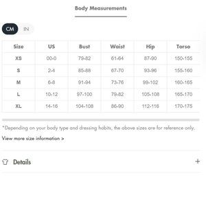 Model is Wearing: XS (cm / inch)