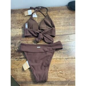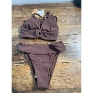 Berlook Dark Coffee Back Tie Bikini NWT size xs