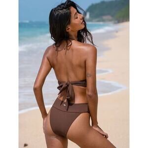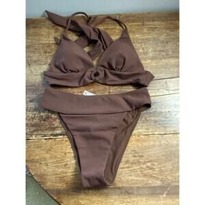 Berlook Dark Coffee Back Tie Bikini Top and Ribbed High Cut Bikini Bottom NWT
