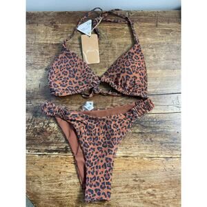 Berlook Leopard Print Halter Triangle Bikini NWT size medium