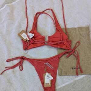 Berlook/ Small / Large Red Jacquard U-Ring Cross Back Bikini Set