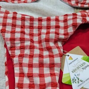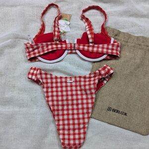 Berlook / new with tags / Small Medium Large / Red Textured Plaid Bikini set