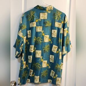 Bermuda Bay 100% Silk Tropical Palm Trees Button Down Shirt Size L