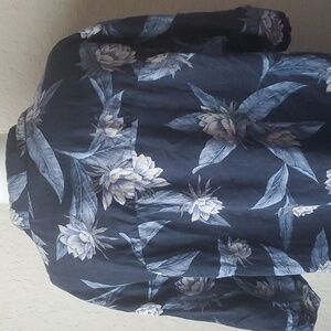 Bermuda Bay Blue Silk Men's XL Floral Short Sleeve Pocket Shirt